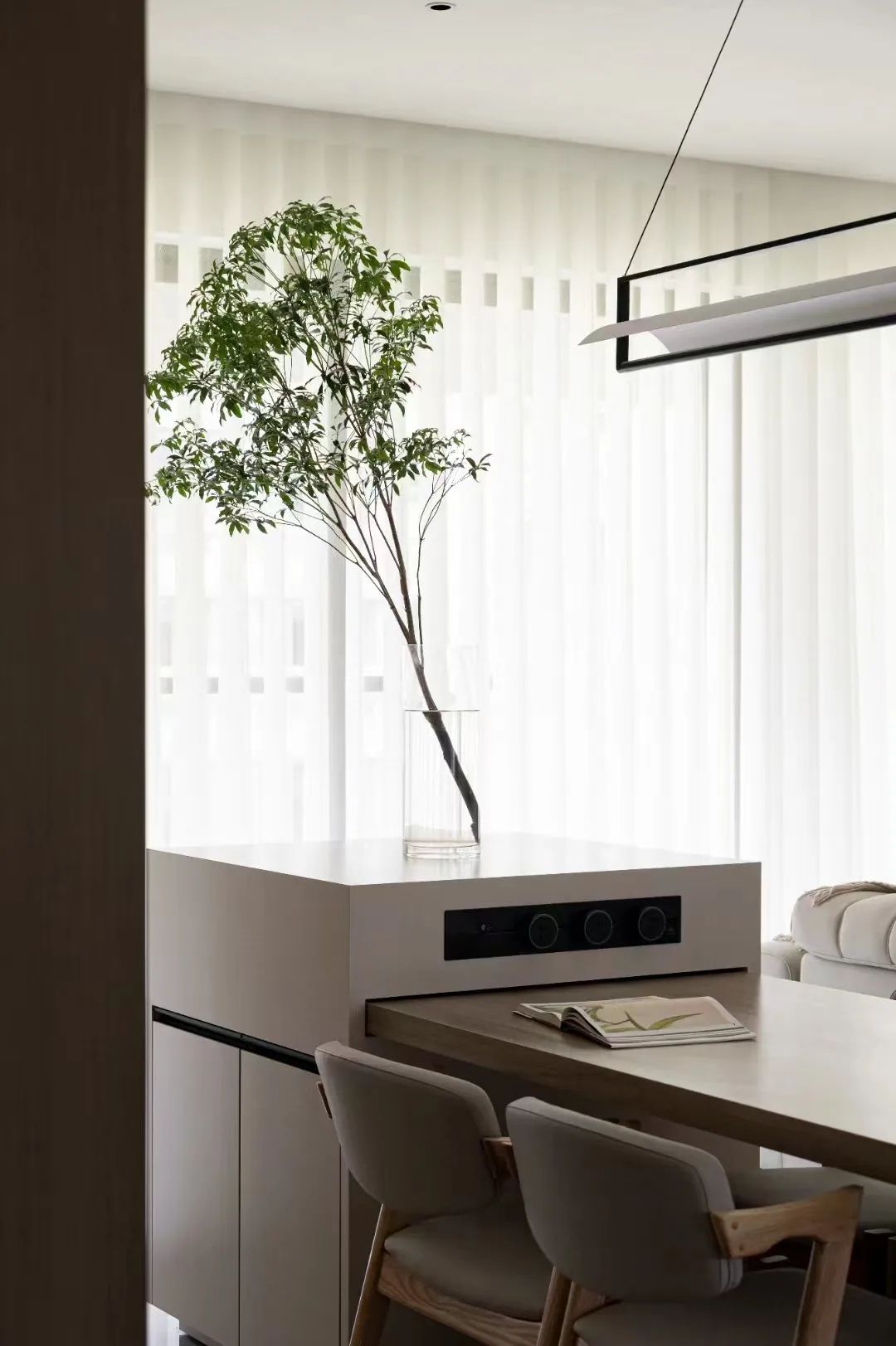 本期的案例完全满足董女士对家的想象,136平方,4房2厅,6M深的大横厅格局,沙发中置分隔出餐厅和客厅空间,一边休闲一边用餐,提高空间的利用率。