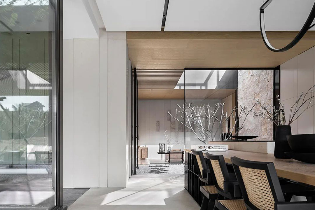 吊顶设计:吊顶可采用四边低中间高的造型,显得开阔;避免选择凹凸不平和使用玻璃、镜子等材料的吊顶,减少清洁难度。